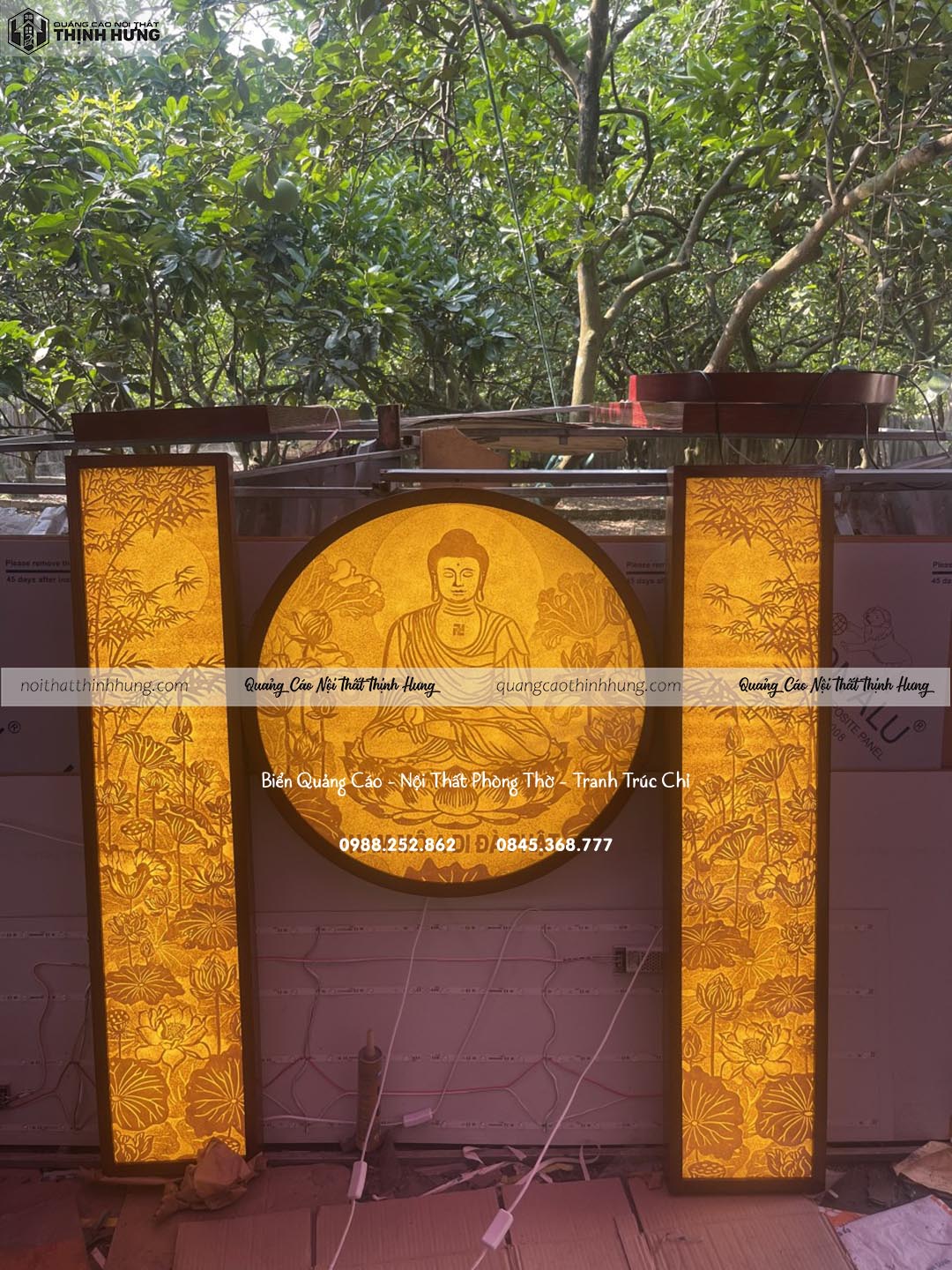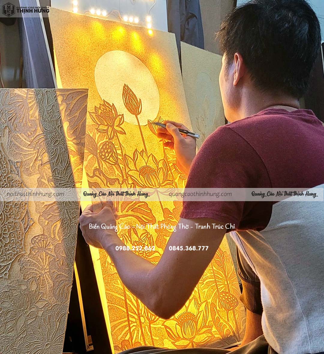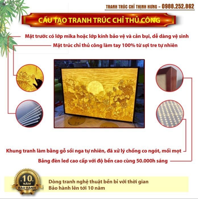 Quảng Cáo Và NộI Thất Thịnh Hưng làm cả quảng cáo và và nội thất làm tranh trúc chỉ in và tranh trúc chỉ thủ công giấy tre. Nên chúng tôi hiều rất rõ về ánh sáng, Xuyên đèn độ nổi của phôi giấy tre, độ nét chỉnh màu của tranh in. Chúng tôi đưa cả máy móc vào sản xuất tranh nên giá cả rất cạnh tranh, tiếp cận gần nhất tới người tiêu dùng đại trà.