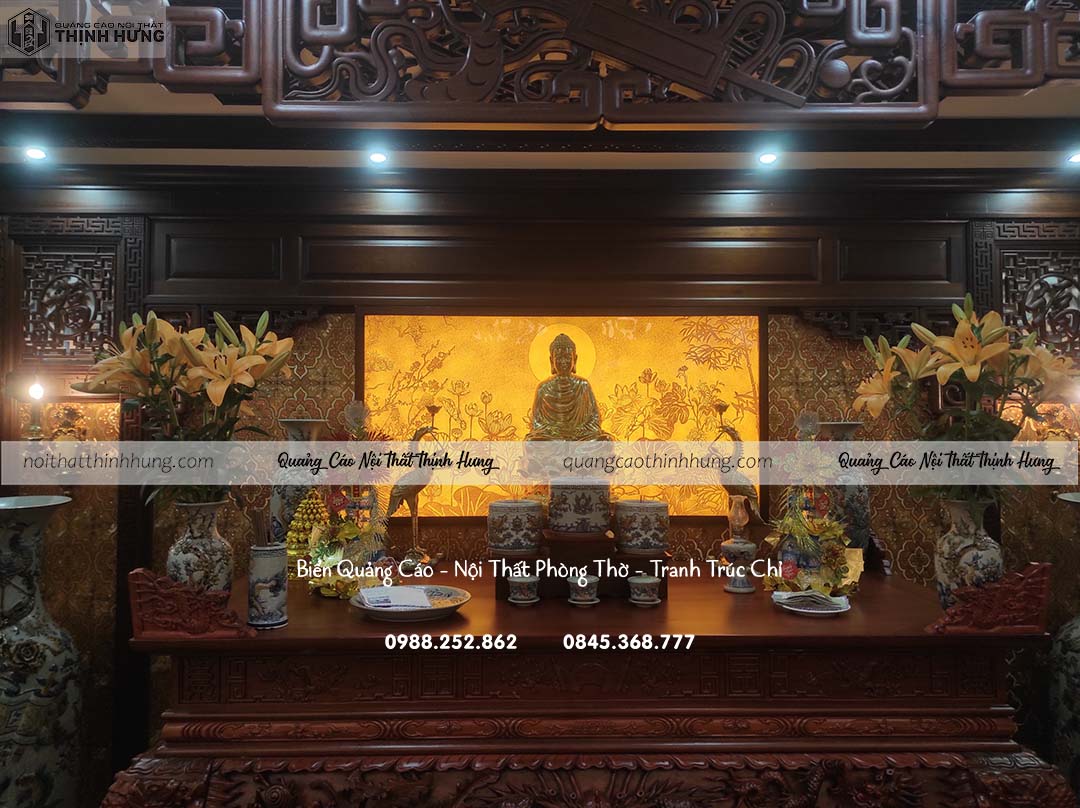 Người dân việt nam đa số là tín đồ phật giáo luôn một lòng tôn kính đức phật học theo đức hạnh của đức phật.Không phải nhà ai cũng có điều kiện làm một bàn thờ riêng để thờ phật, một bàn thờ phật tại gia chỉ cần đơn giản thành tâm hoặc trang trí cho đẹp trang nghiêm thì càng tốt và Nội Thất Thịnh Hưng xin gửi quý khách mẫu tranh trúc chỉ bàn thờ phật đẹp nhất !